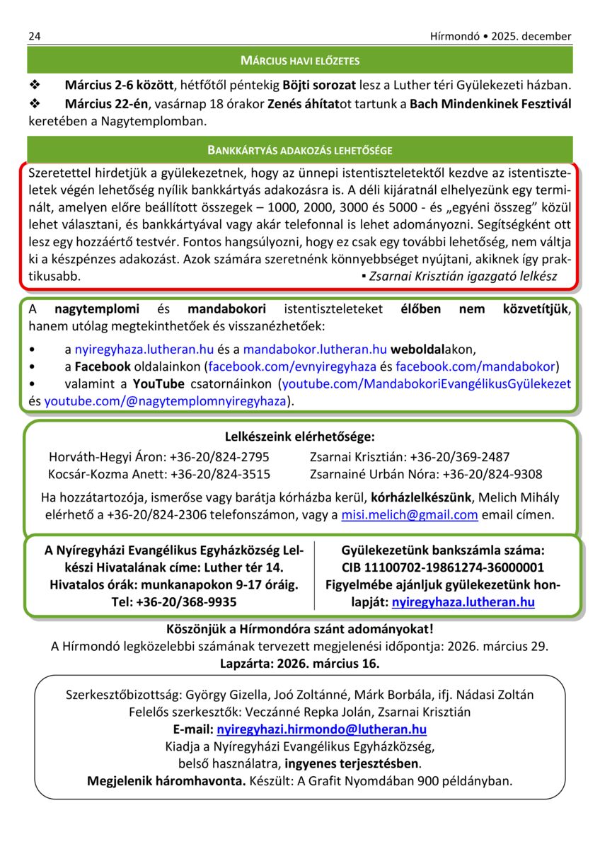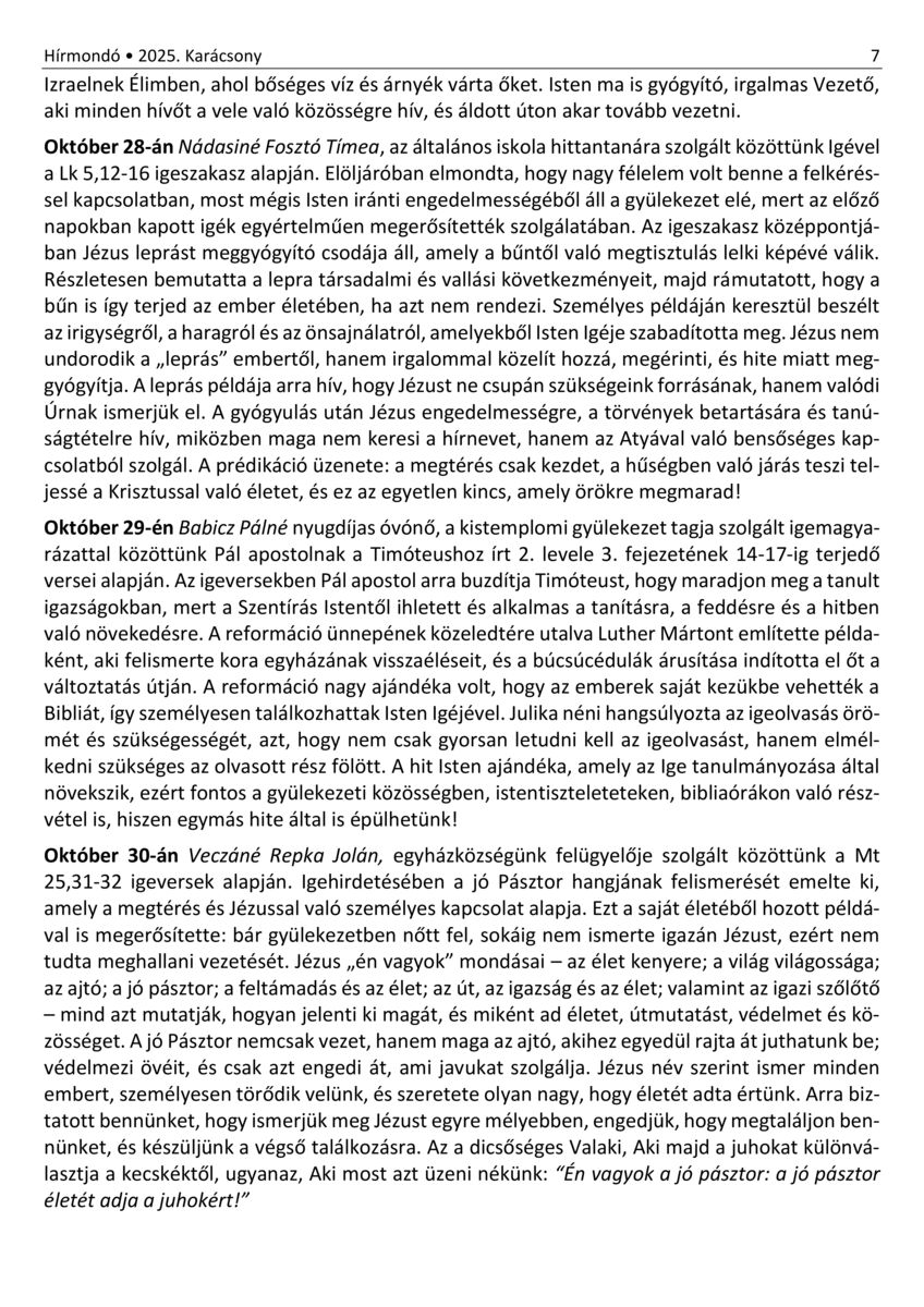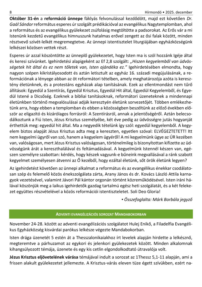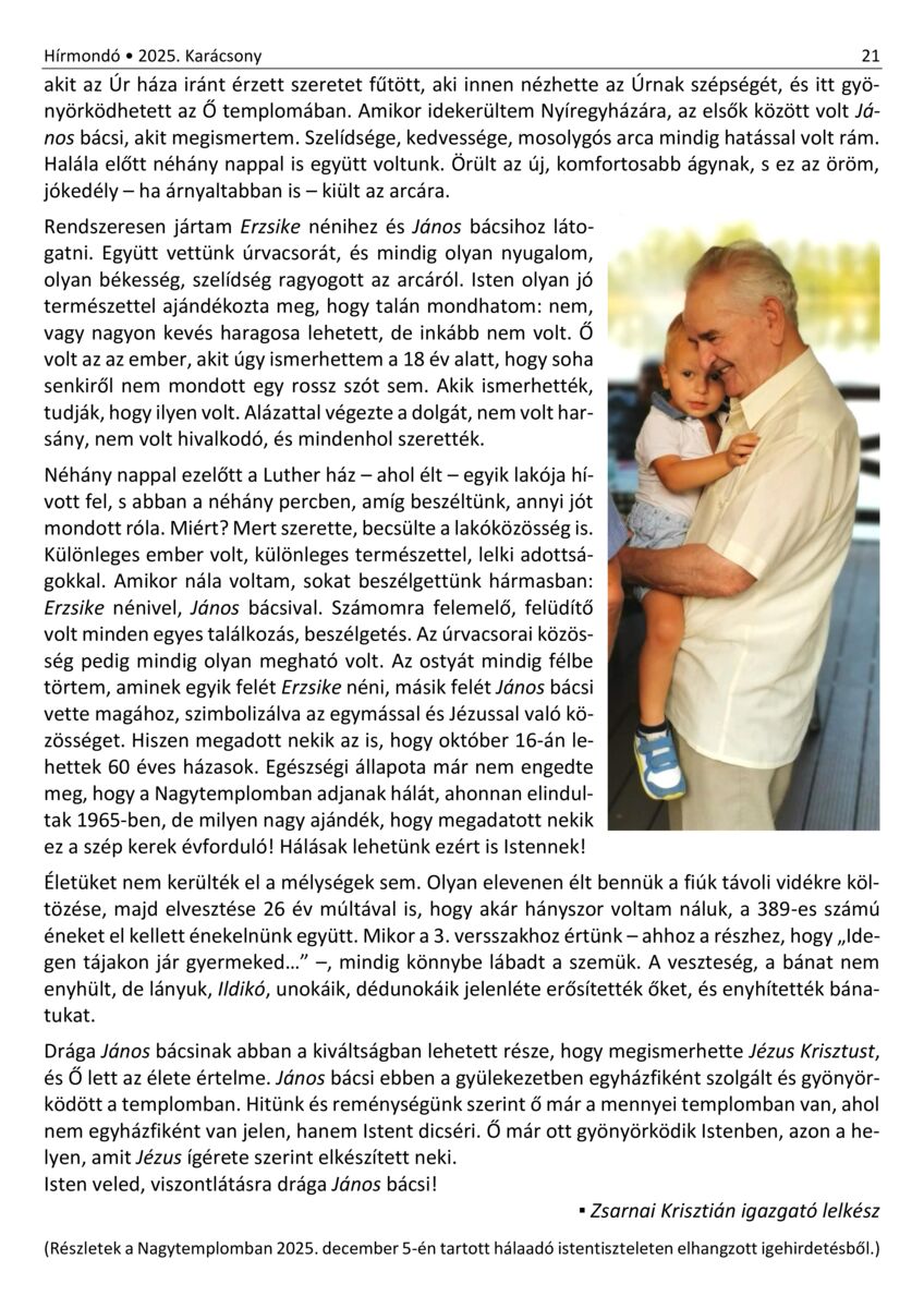 Nyíregyháza - Hírmondó. A Nyíregyházi Evangélikus Gyülekezet hírei. 30. (2021) -