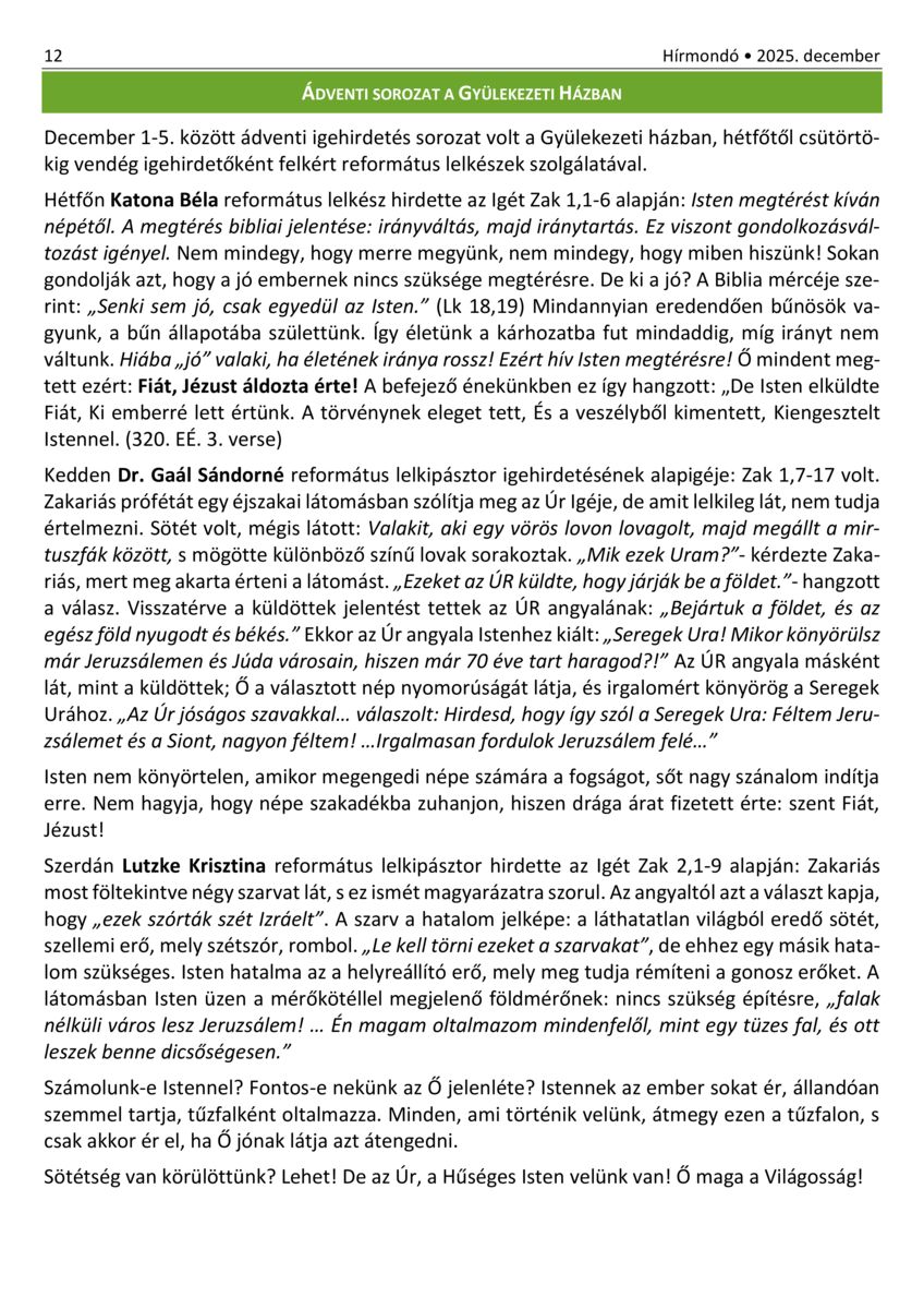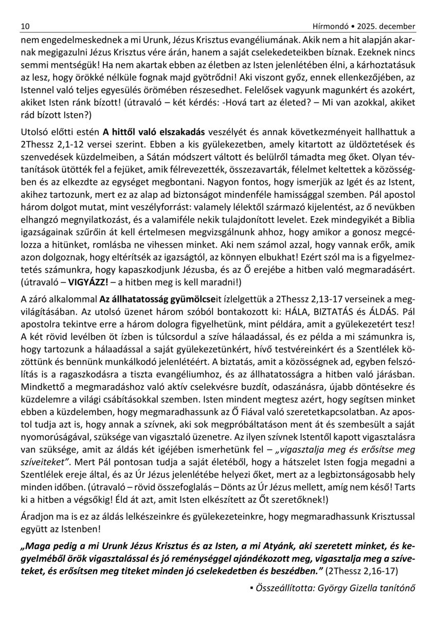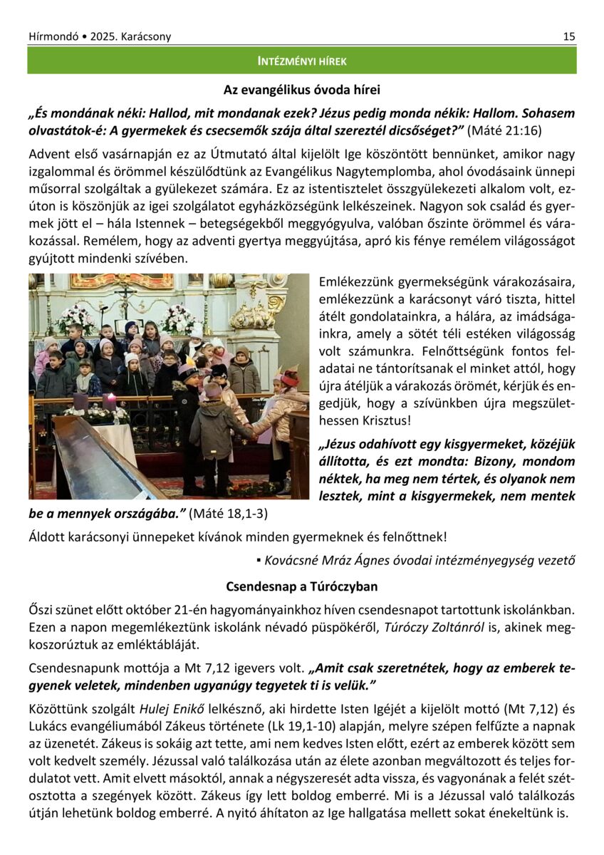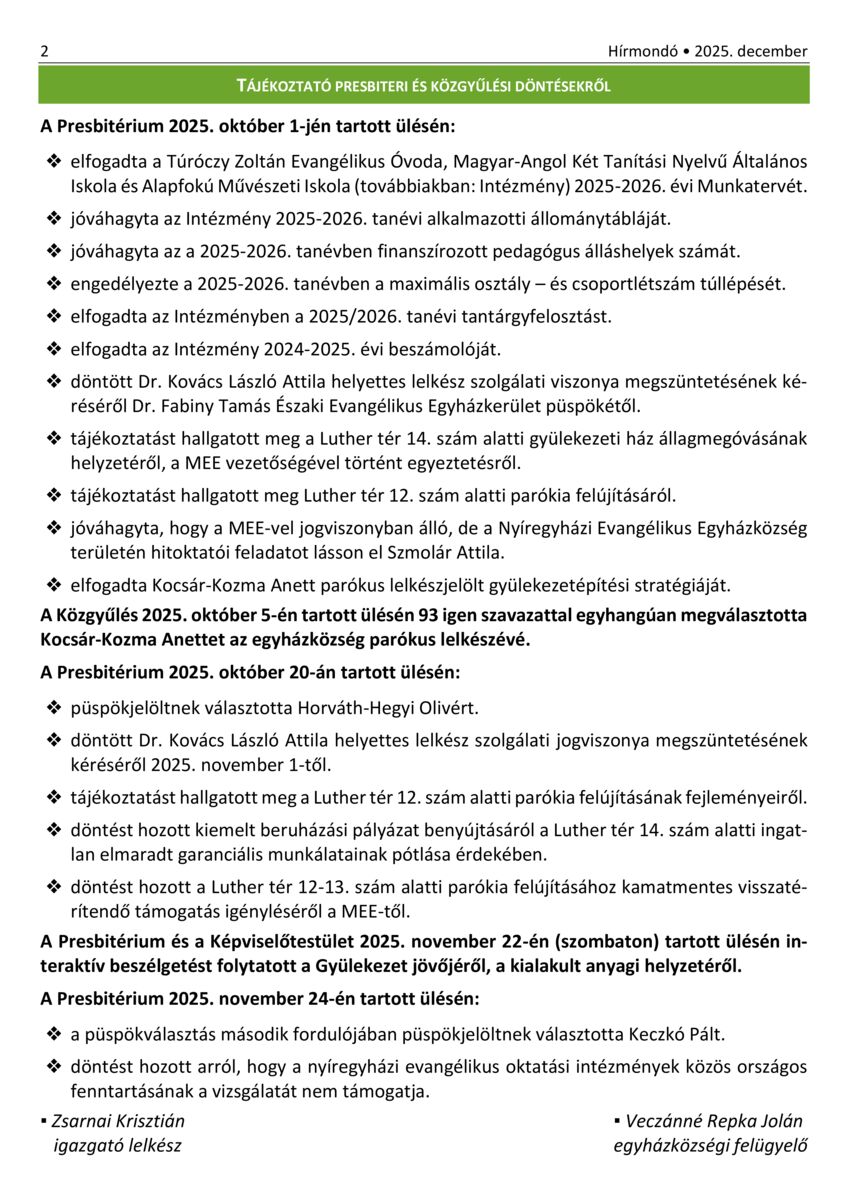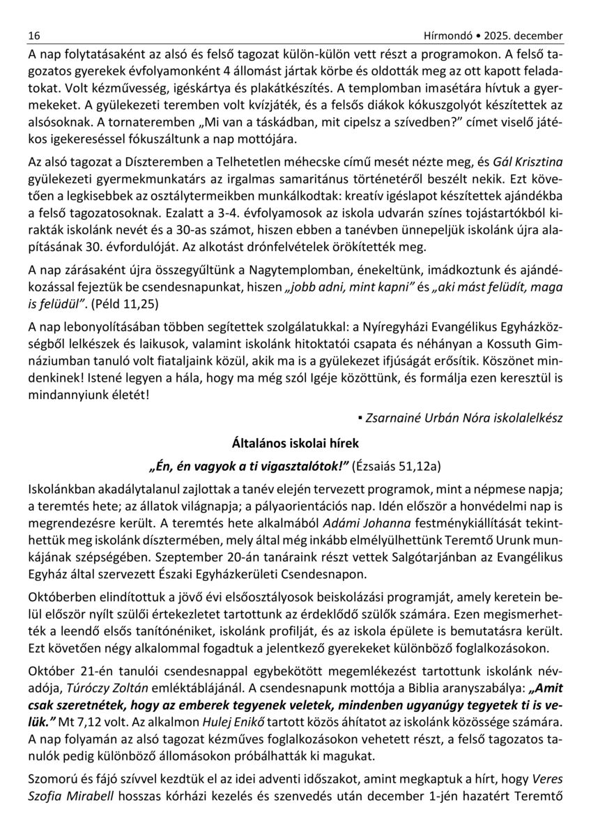 Nyíregyháza - Hírmondó. A Nyíregyházi Evangélikus Gyülekezet hírei. 30. (2021) -