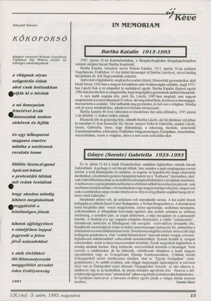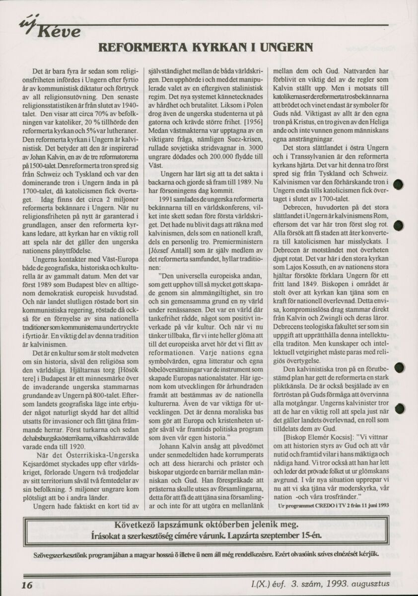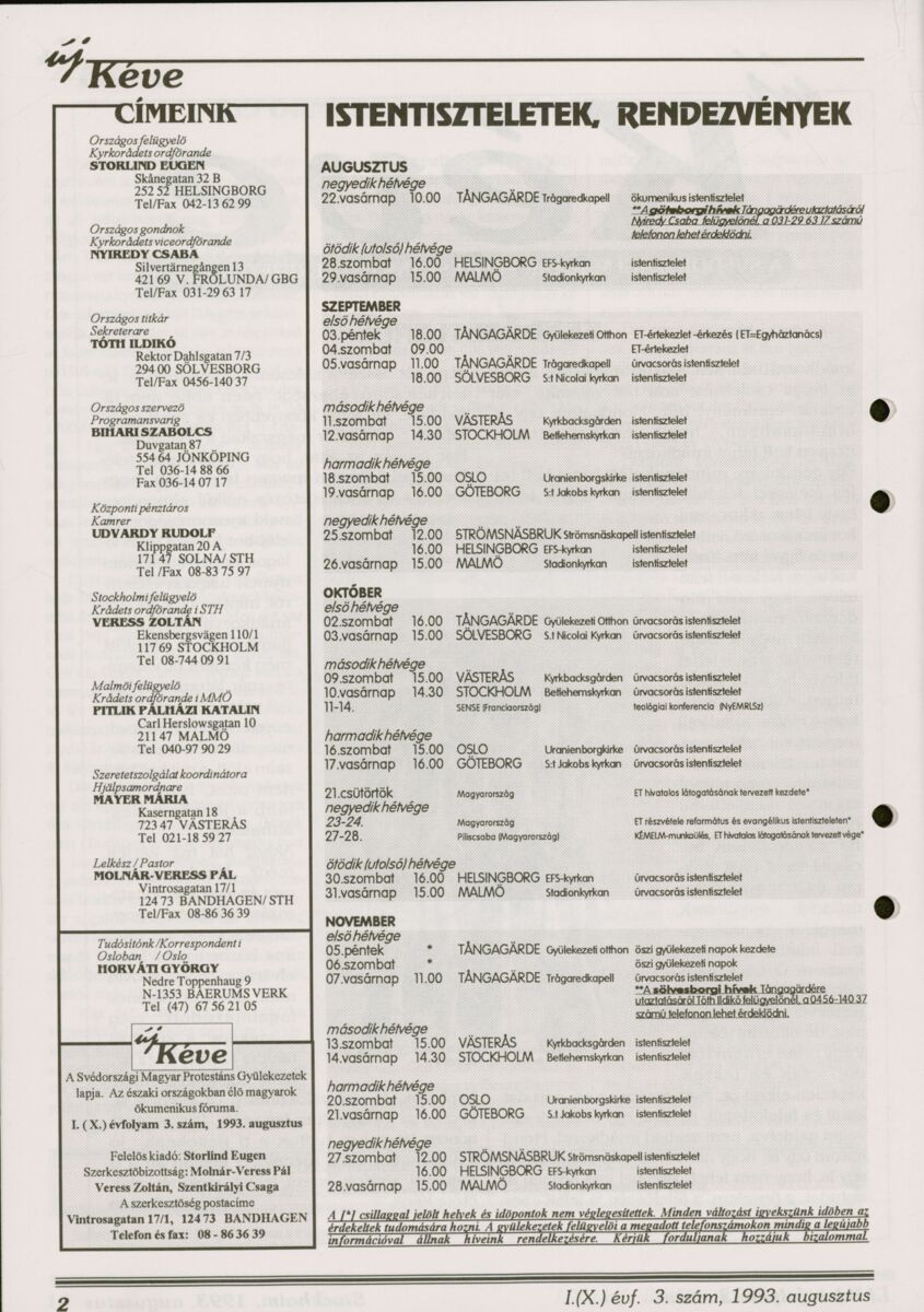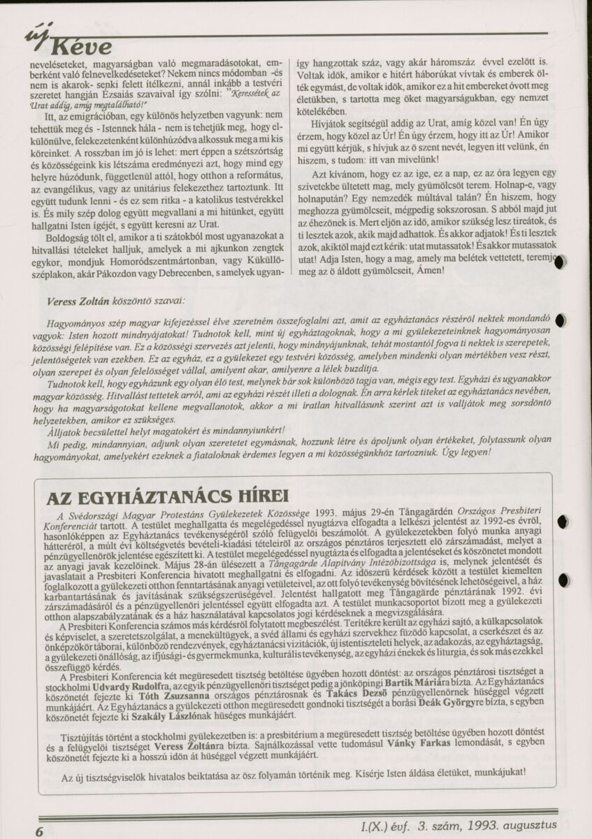 Új Kéve - A svédországi magyar protestáns gyülekezetek lapja. 1993.
