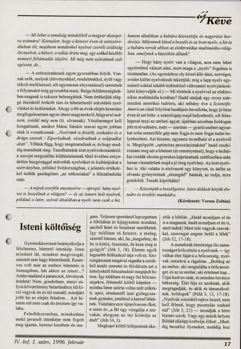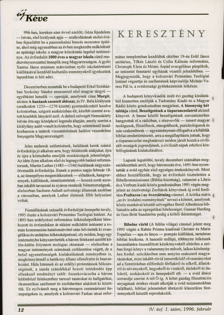 Állomány: Uj_Keve_1996_IV_evf_0001_szam.pdf
