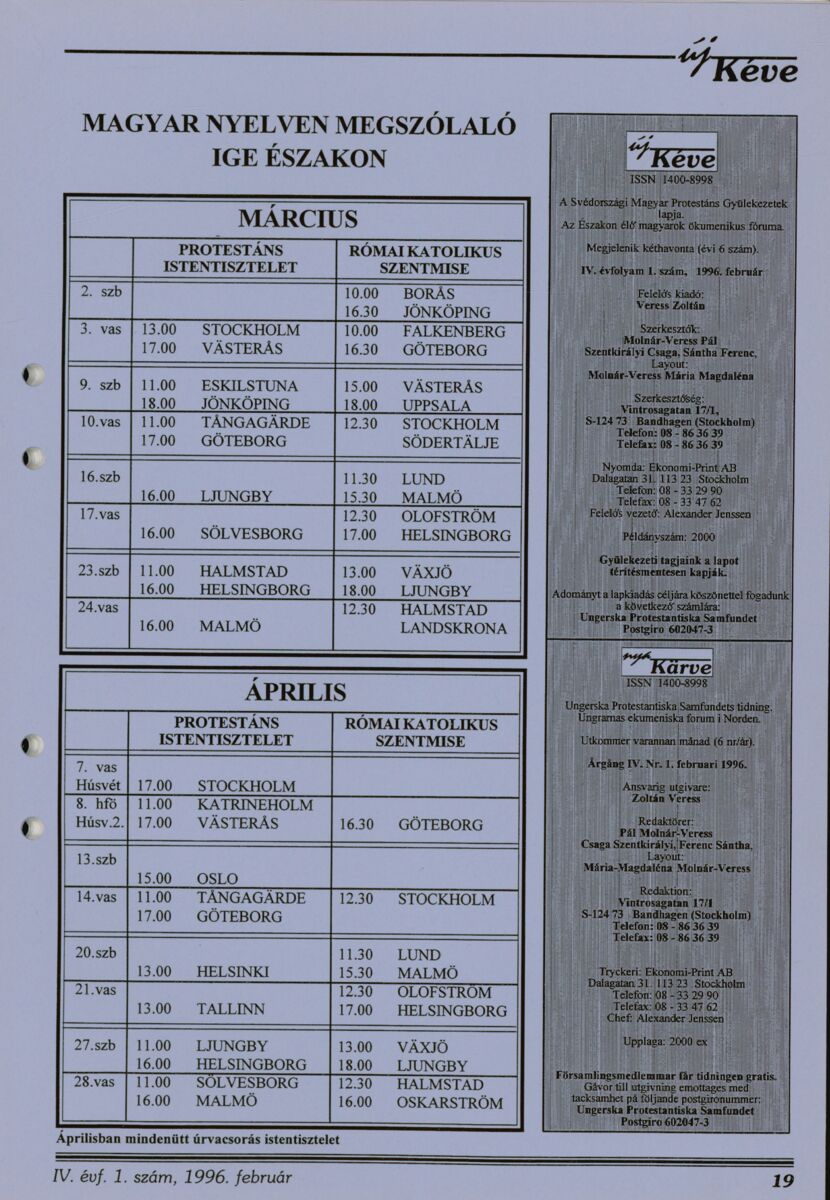 Új Kéve - A svédországi magyar protestáns gyülekezetek lapja. 1996.