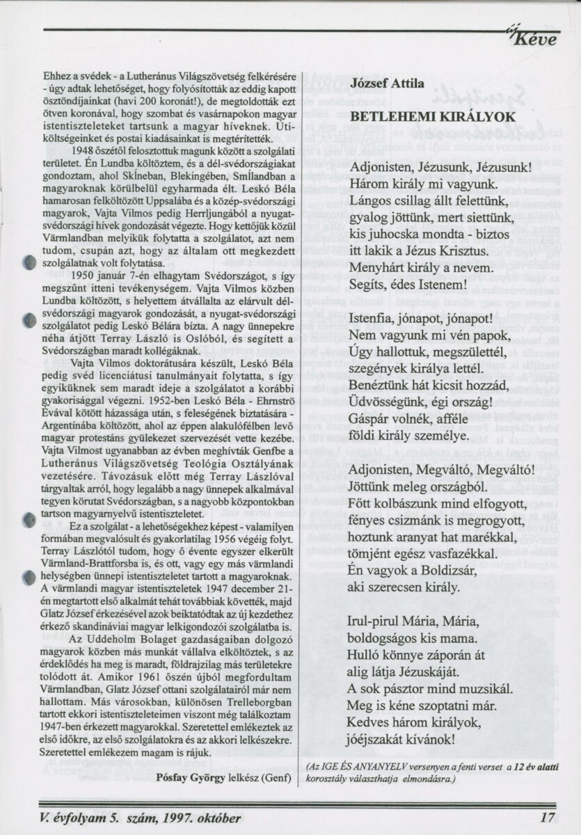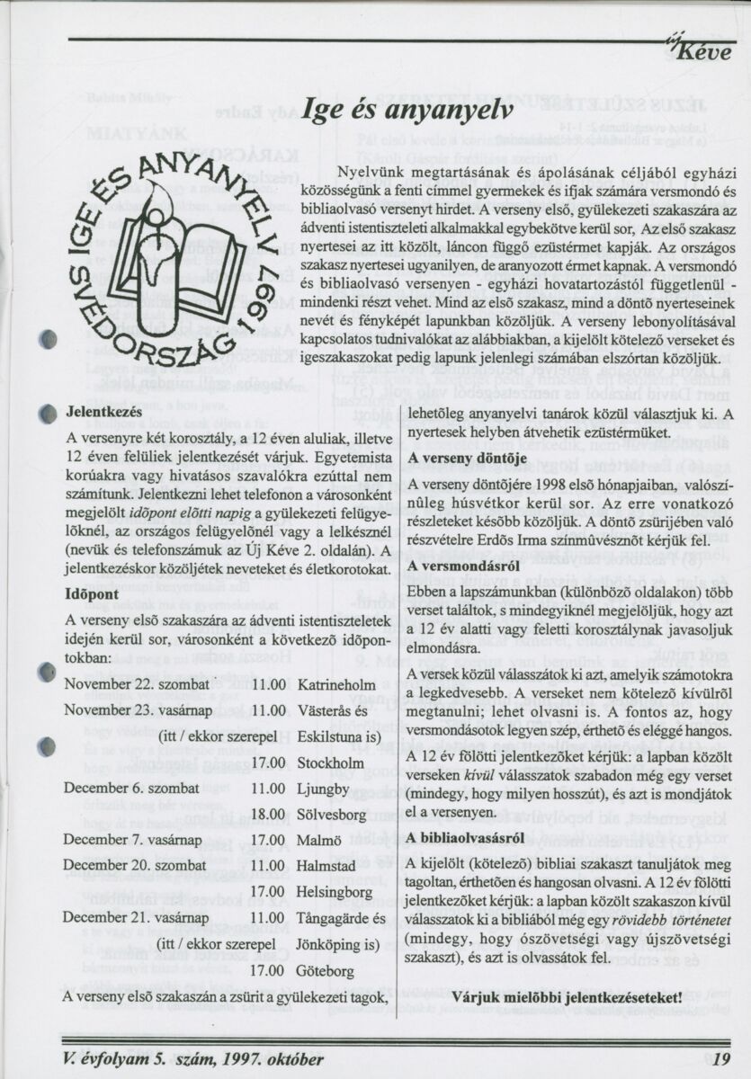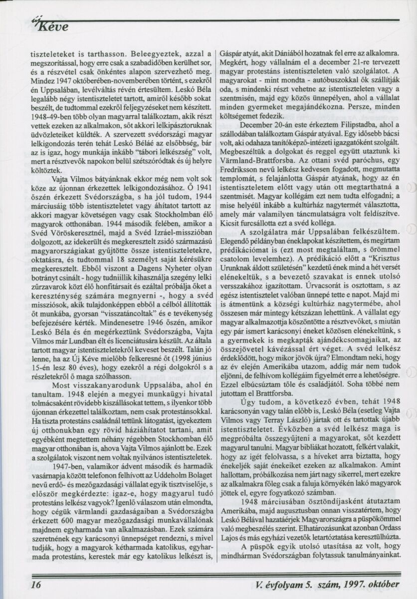 Új Kéve - A svédországi magyar protestáns gyülekezetek lapja. 1997.