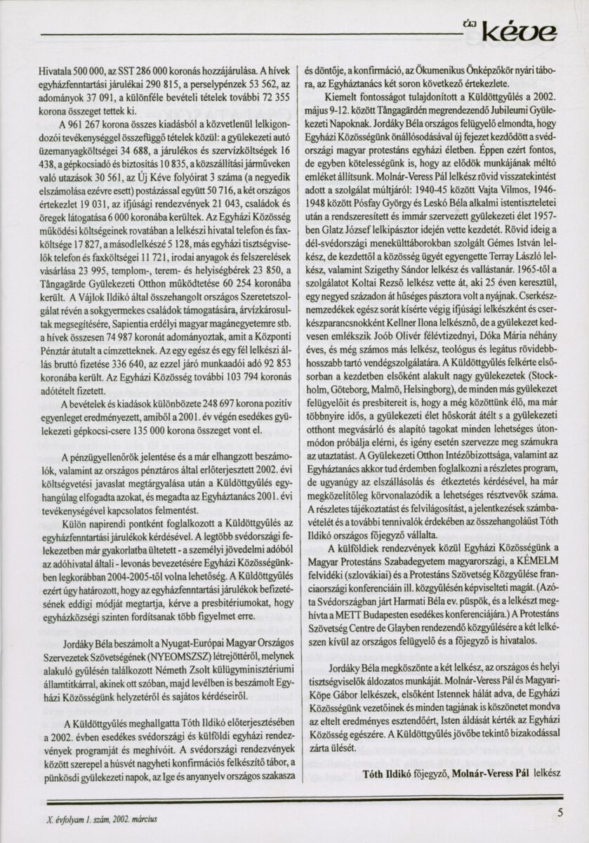 Új Kéve - A svédországi magyar protestáns gyülekezetek lapja. 2002.
