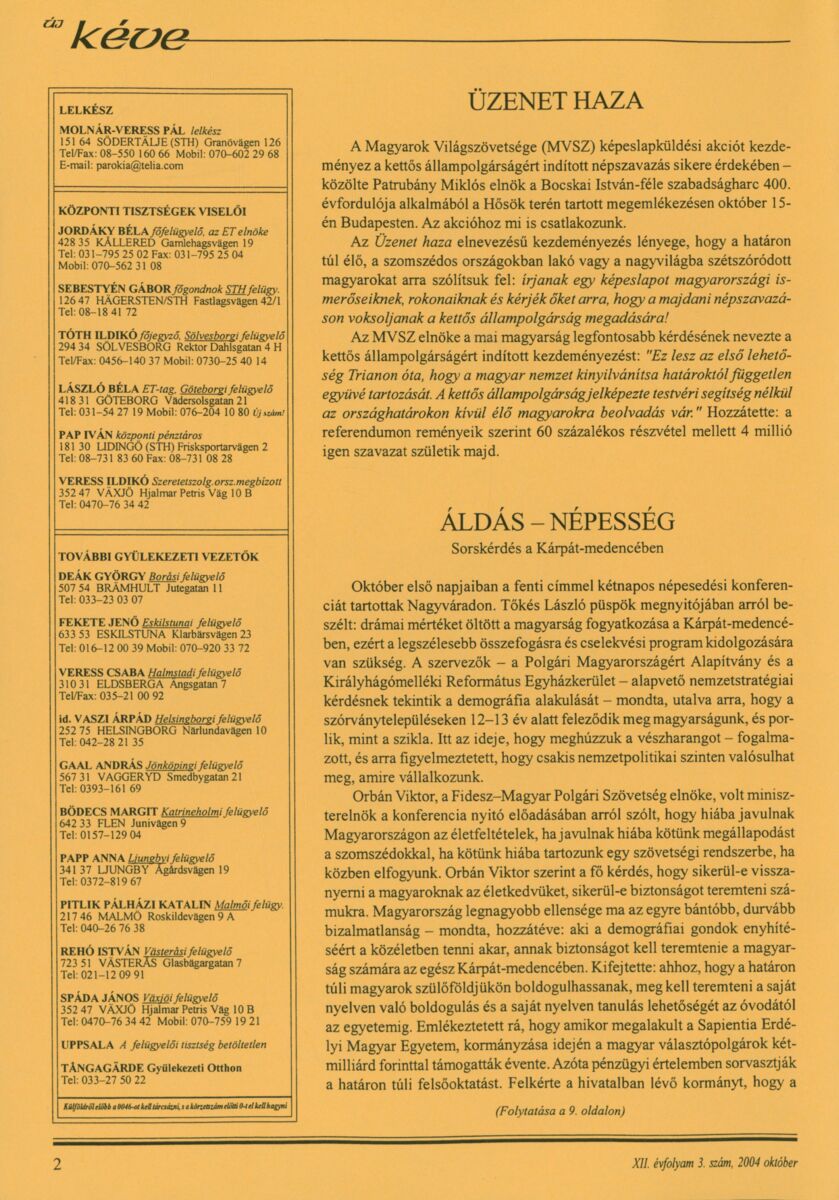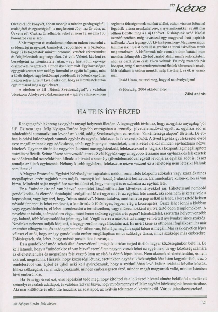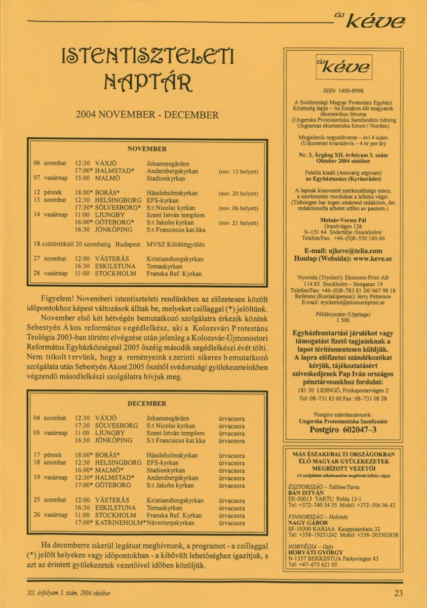 Új Kéve - A svédországi magyar protestáns gyülekezetek lapja. 2004.