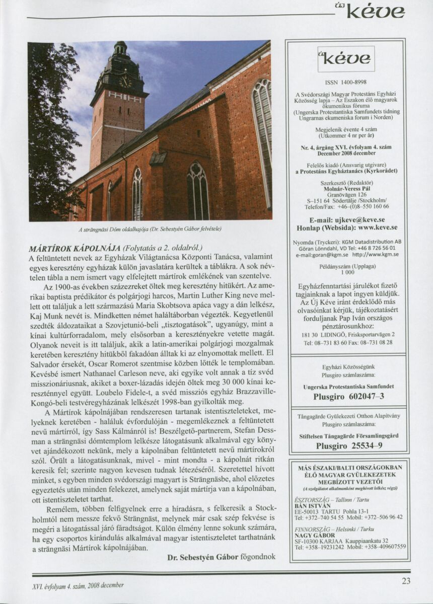 Új Kéve - A svédországi magyar protestáns gyülekezetek lapja. 2008.