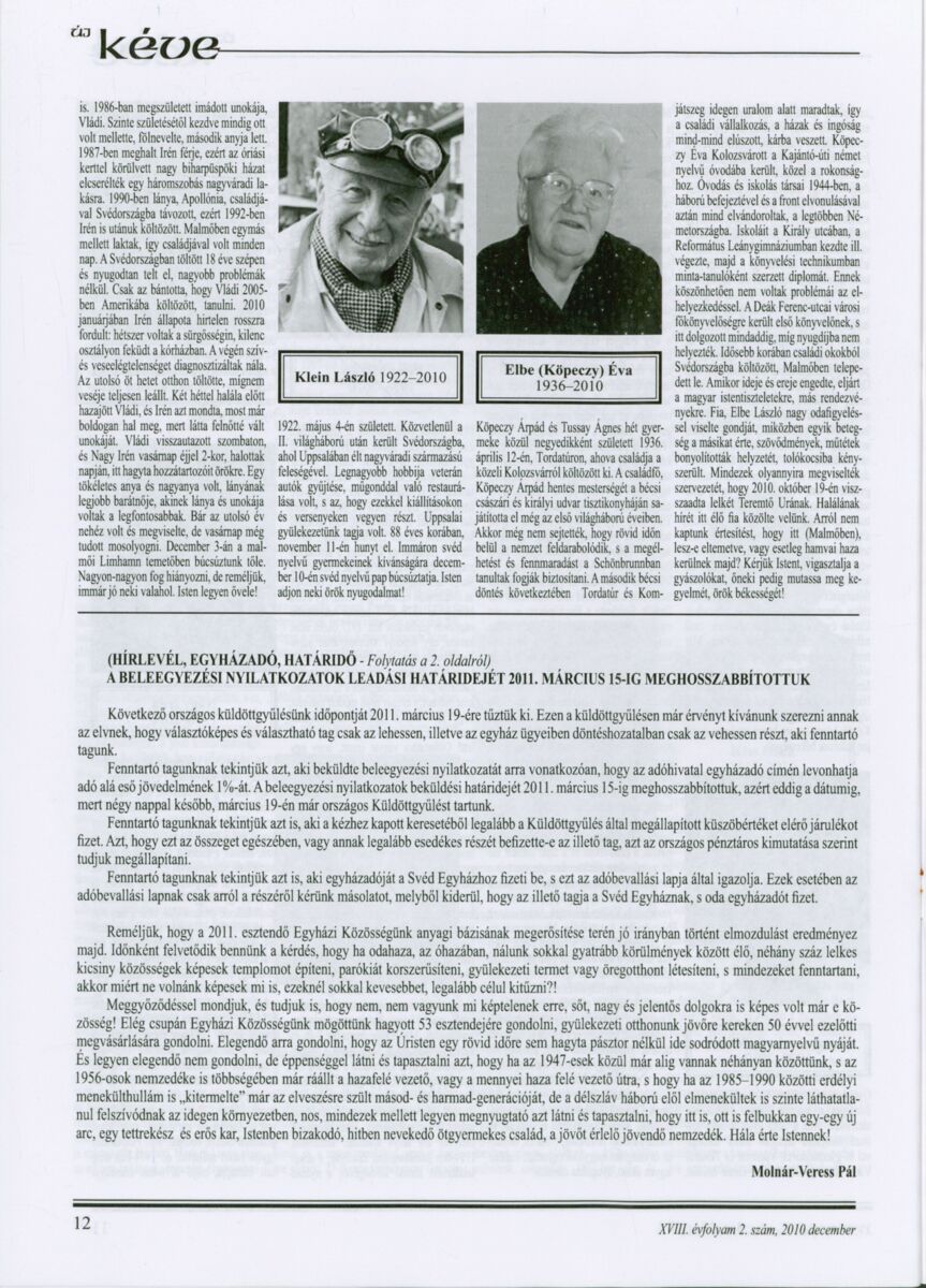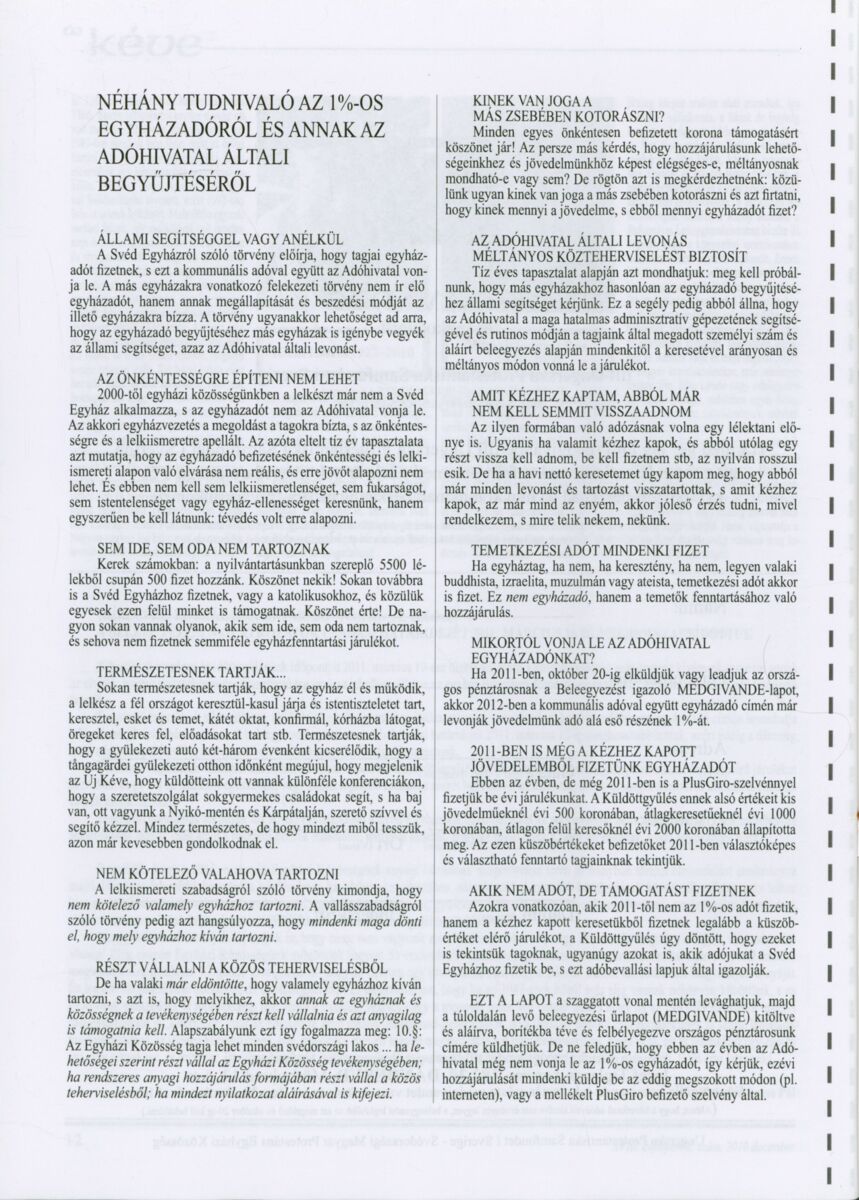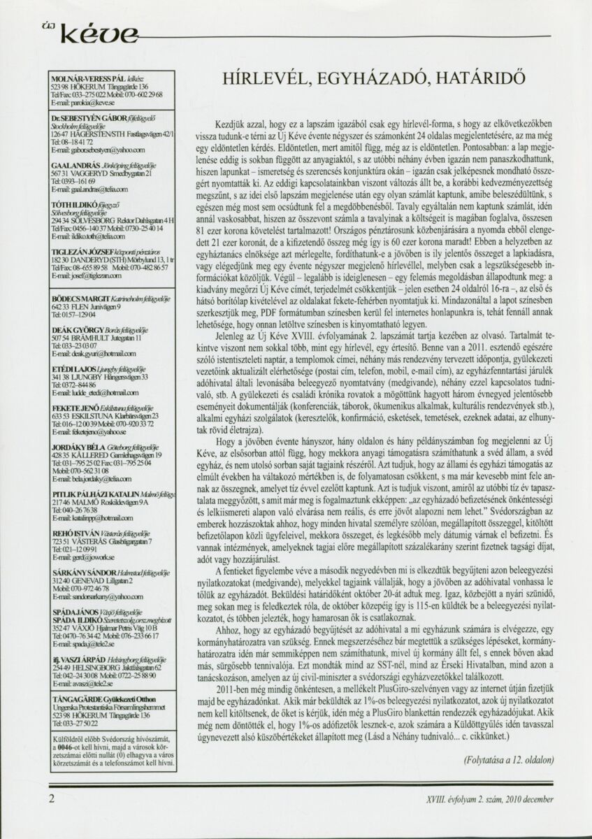 Új Kéve - A svédországi magyar protestáns gyülekezetek lapja. 2010.