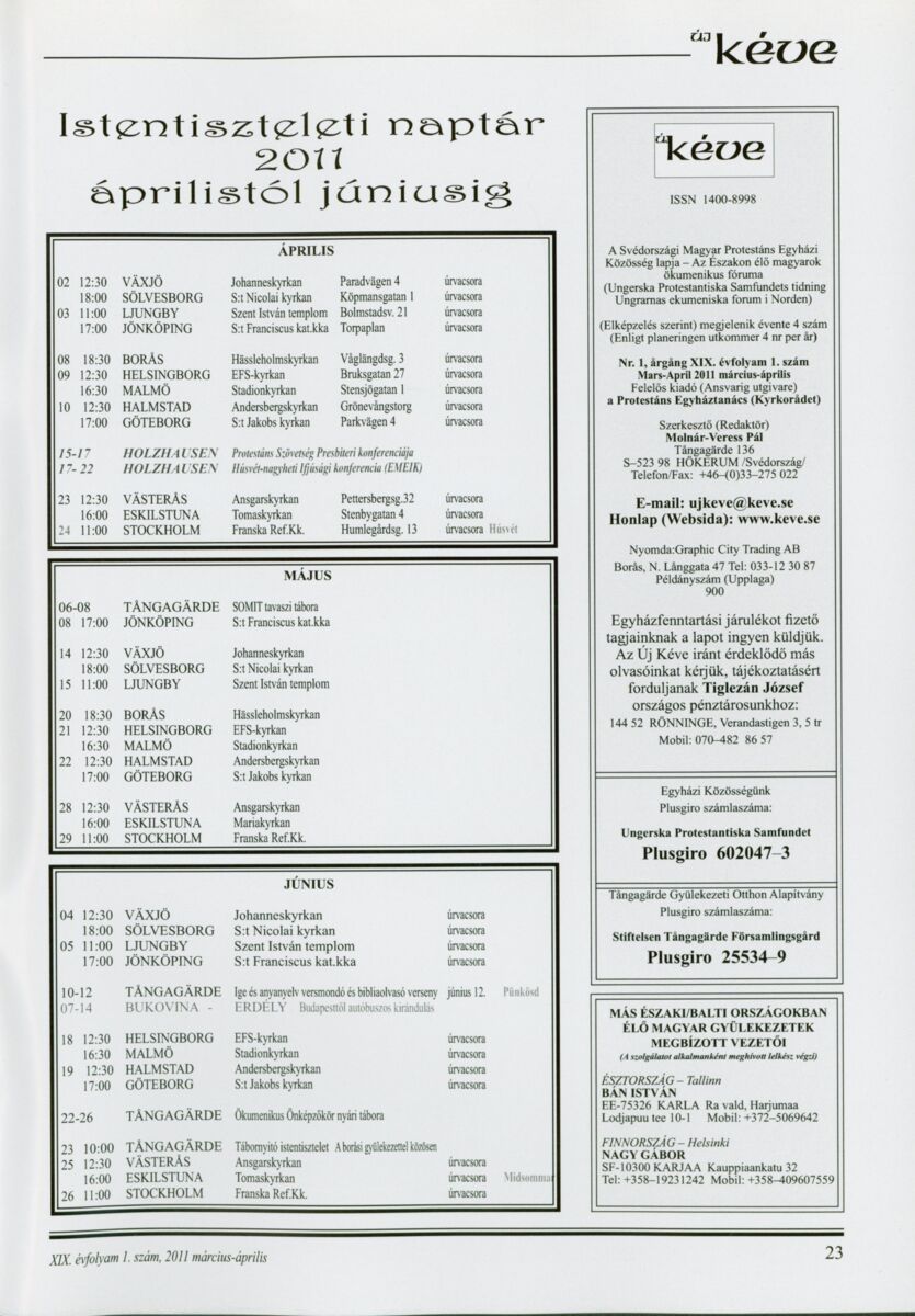 Új Kéve - A svédországi magyar protestáns gyülekezetek lapja. 2011.