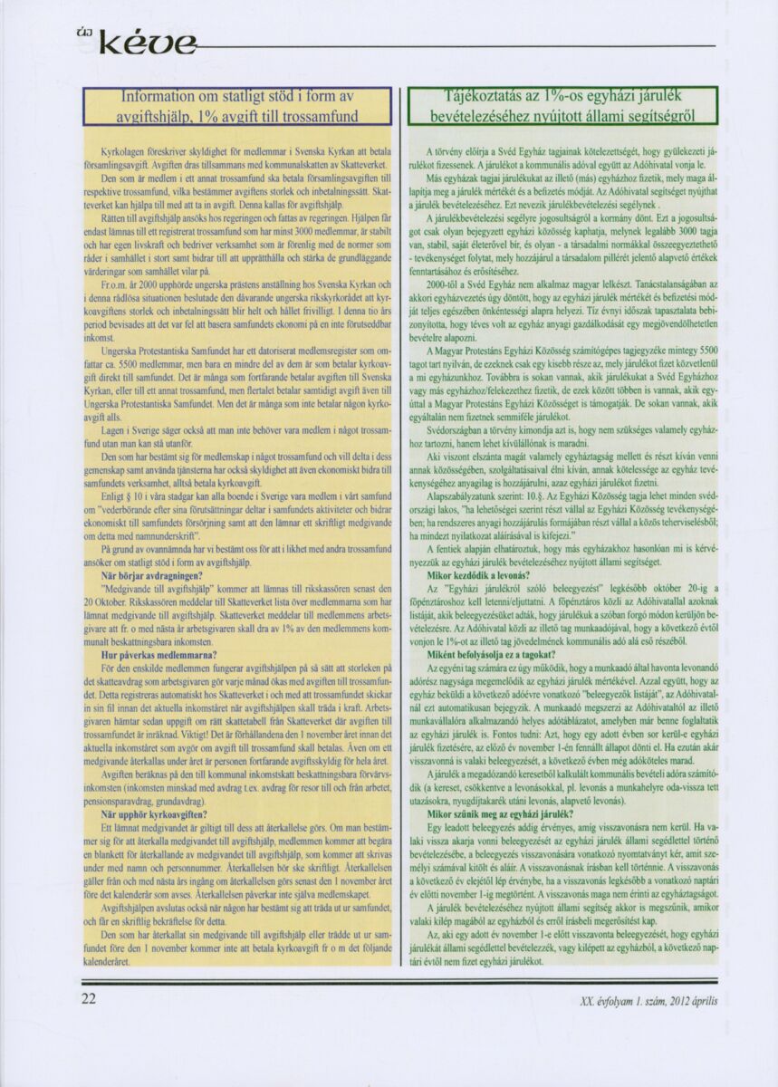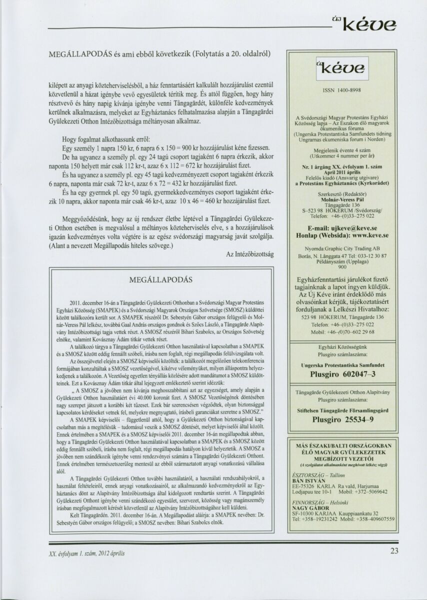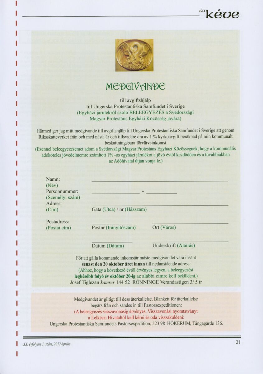 Új Kéve - A svédországi magyar protestáns gyülekezetek lapja. 2012.