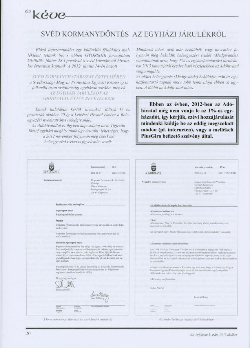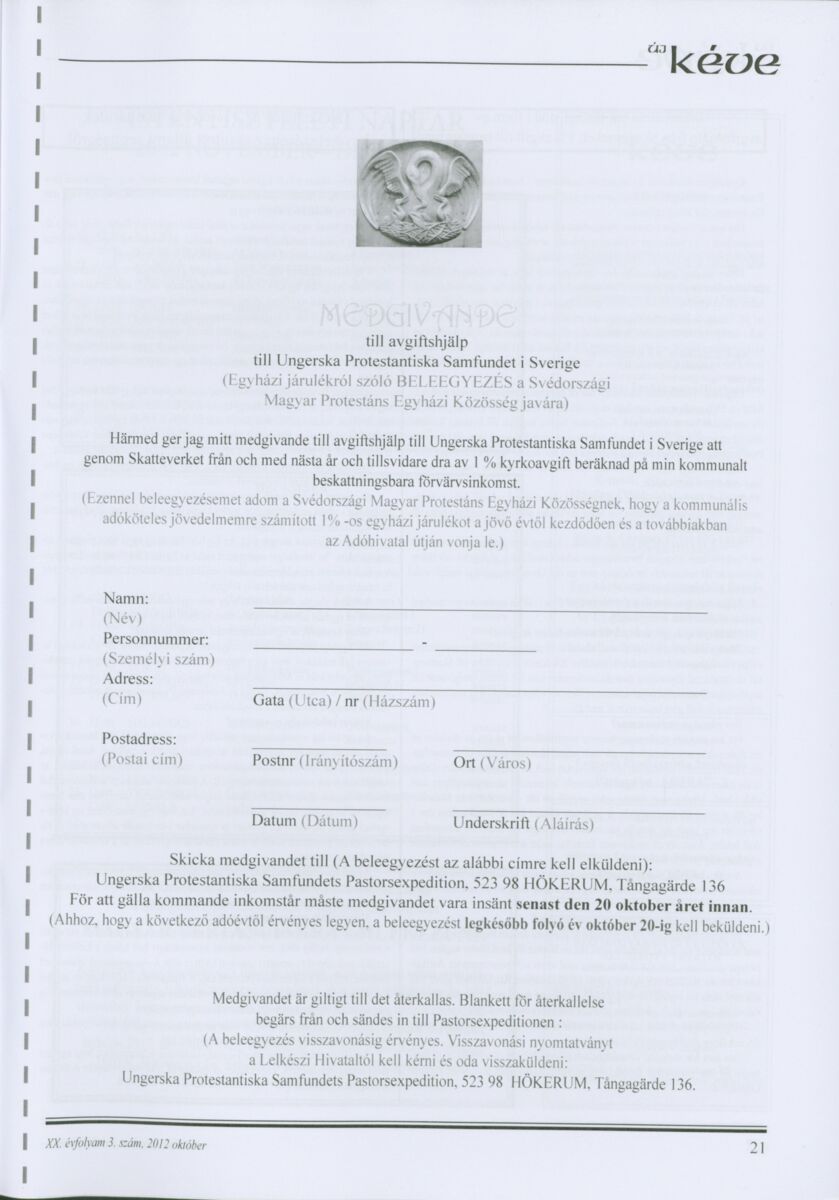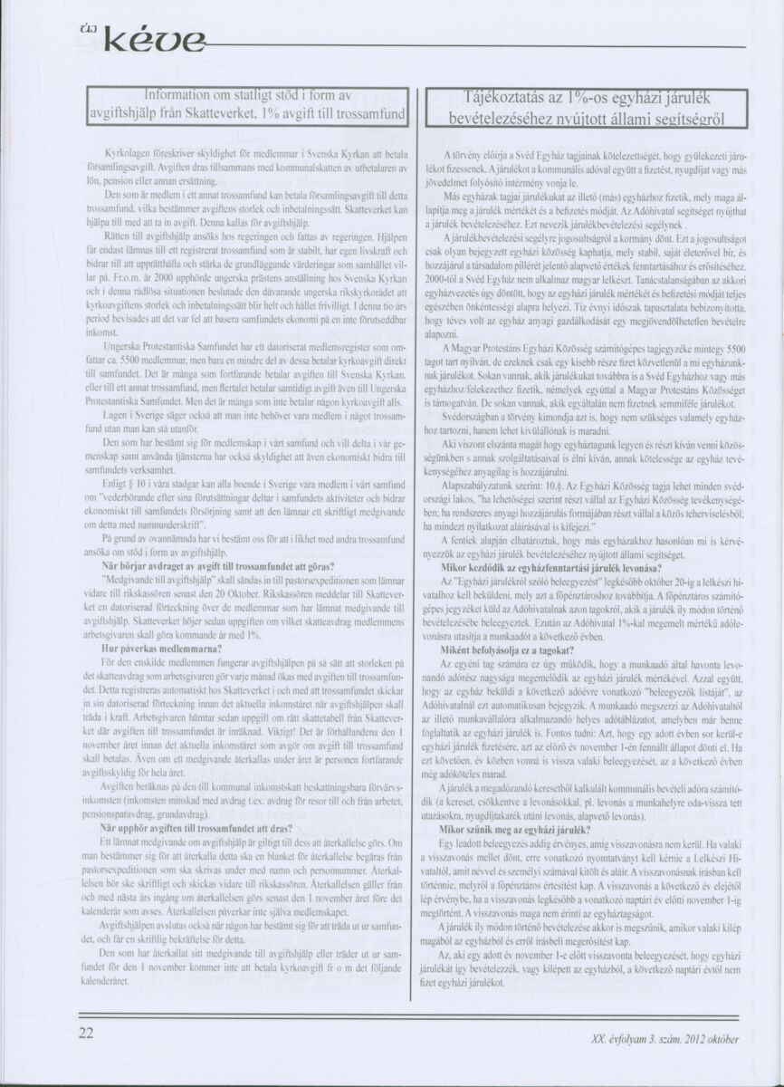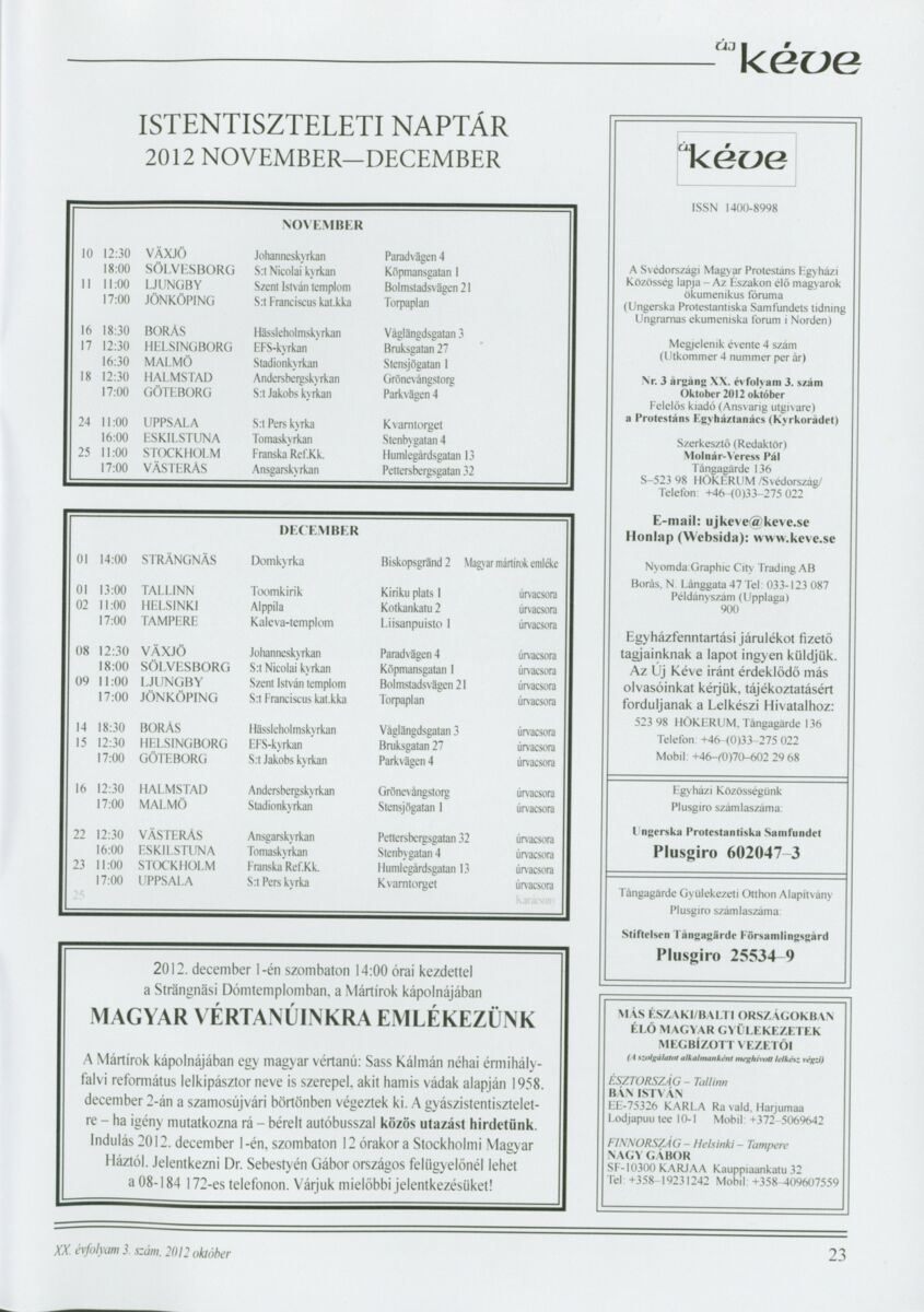 Új Kéve - A svédországi magyar protestáns gyülekezetek lapja. 2012.