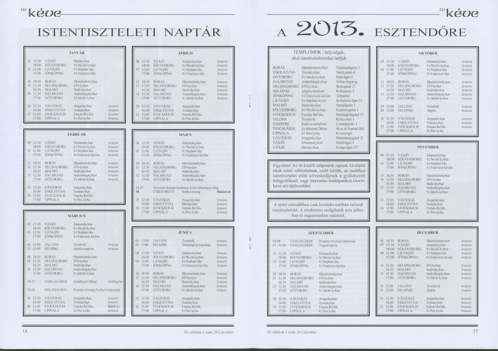 Új Kéve - A svédországi magyar protestáns gyülekezetek lapja. 2012.