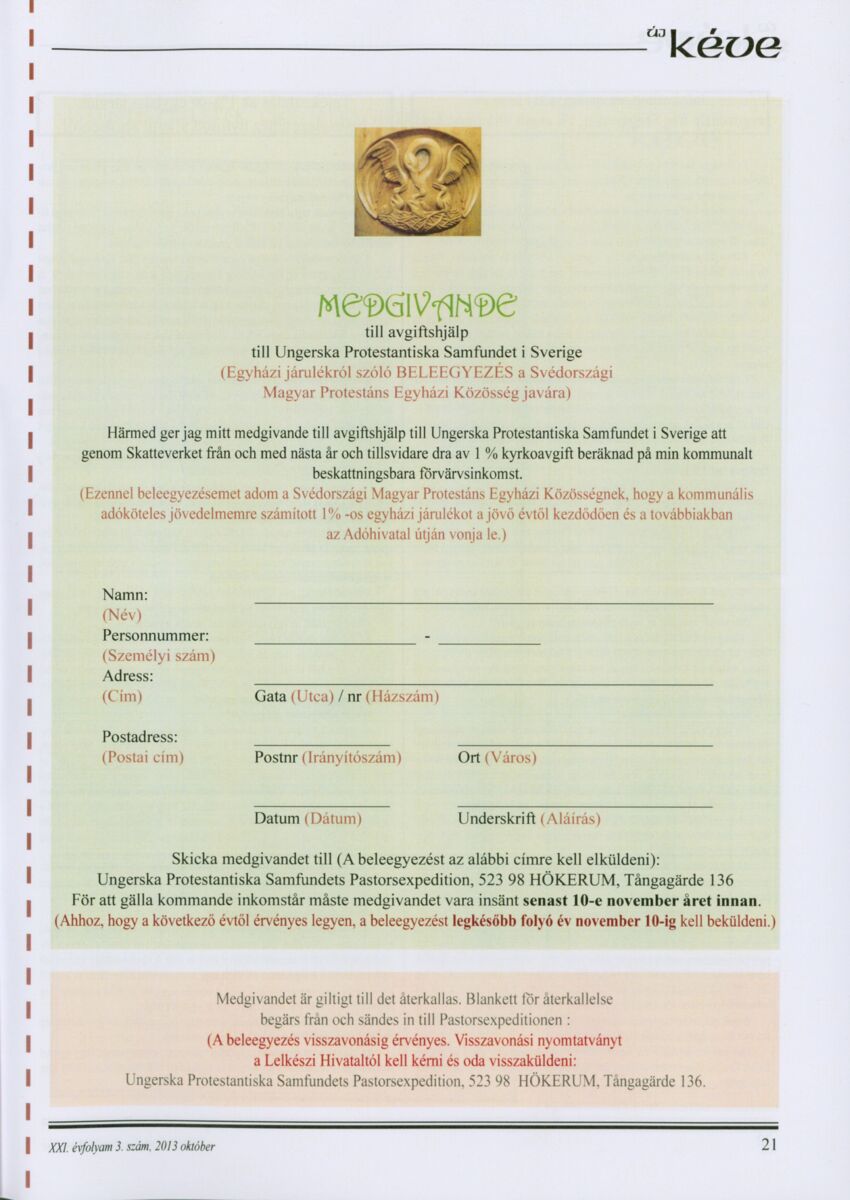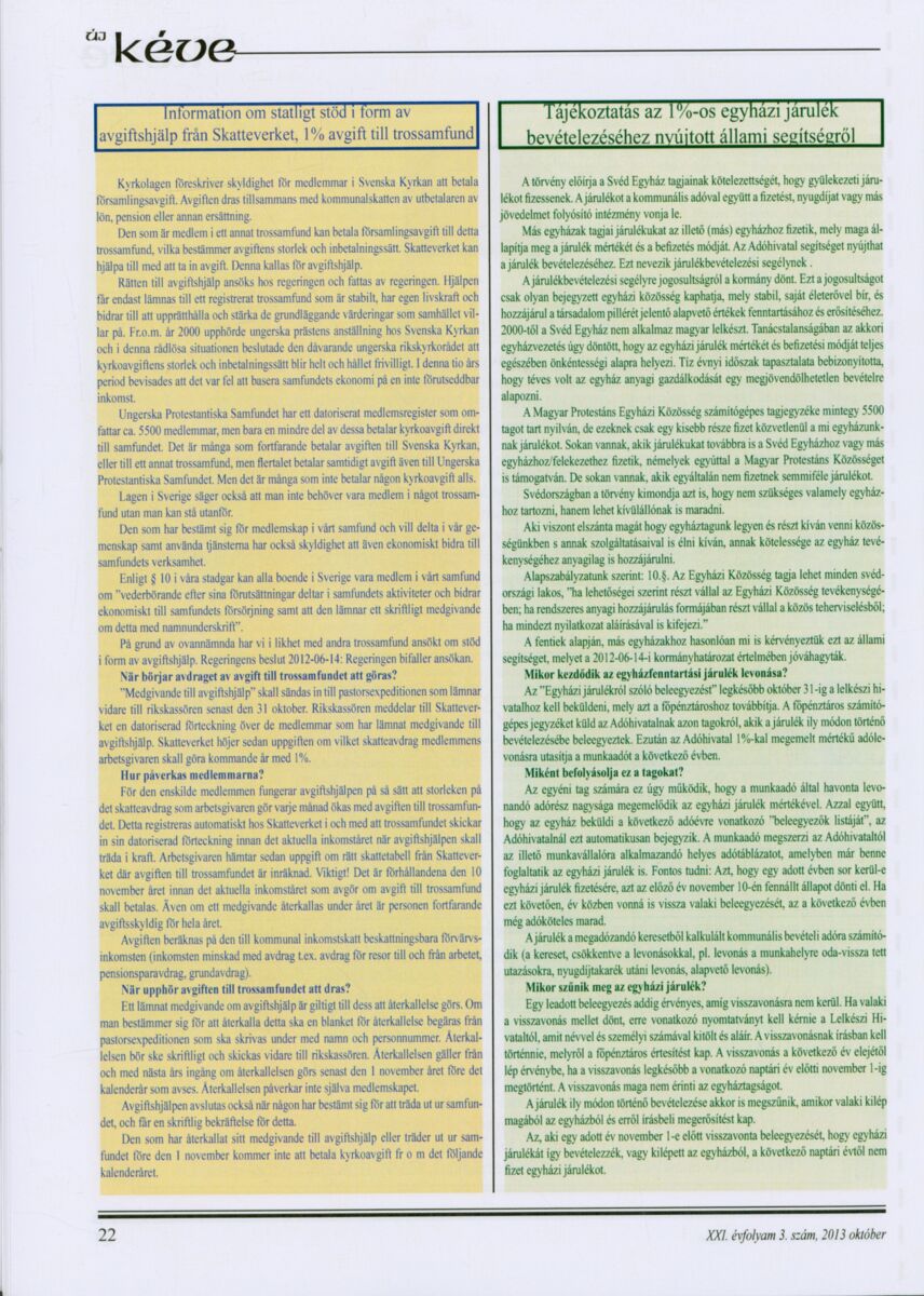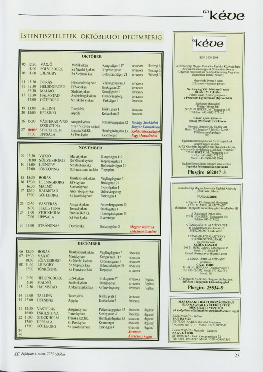 Új Kéve - A svédországi magyar protestáns gyülekezetek lapja. 2013.