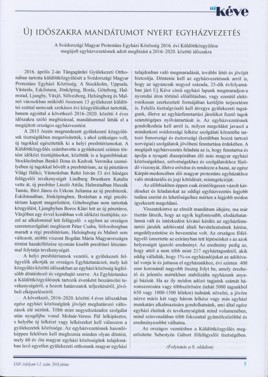 Új Kéve - A svédországi magyar protestáns gyülekezetek lapja. 2016.