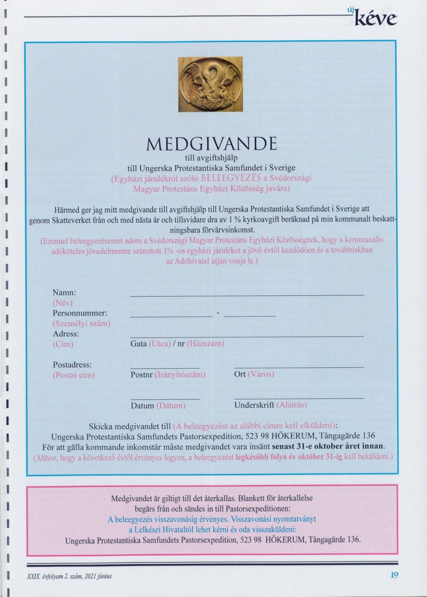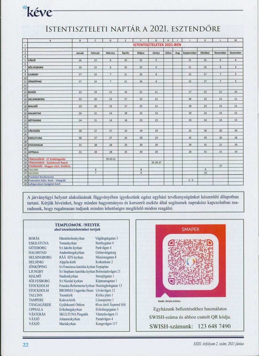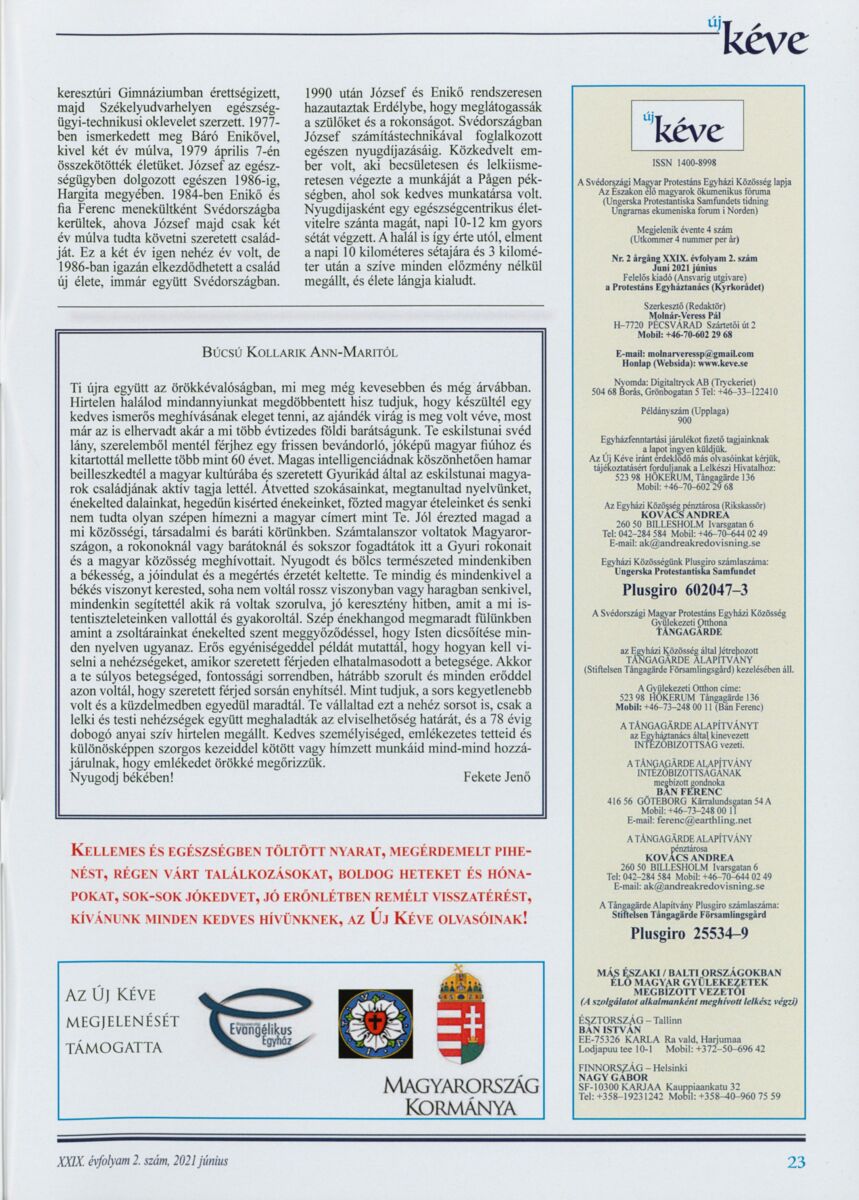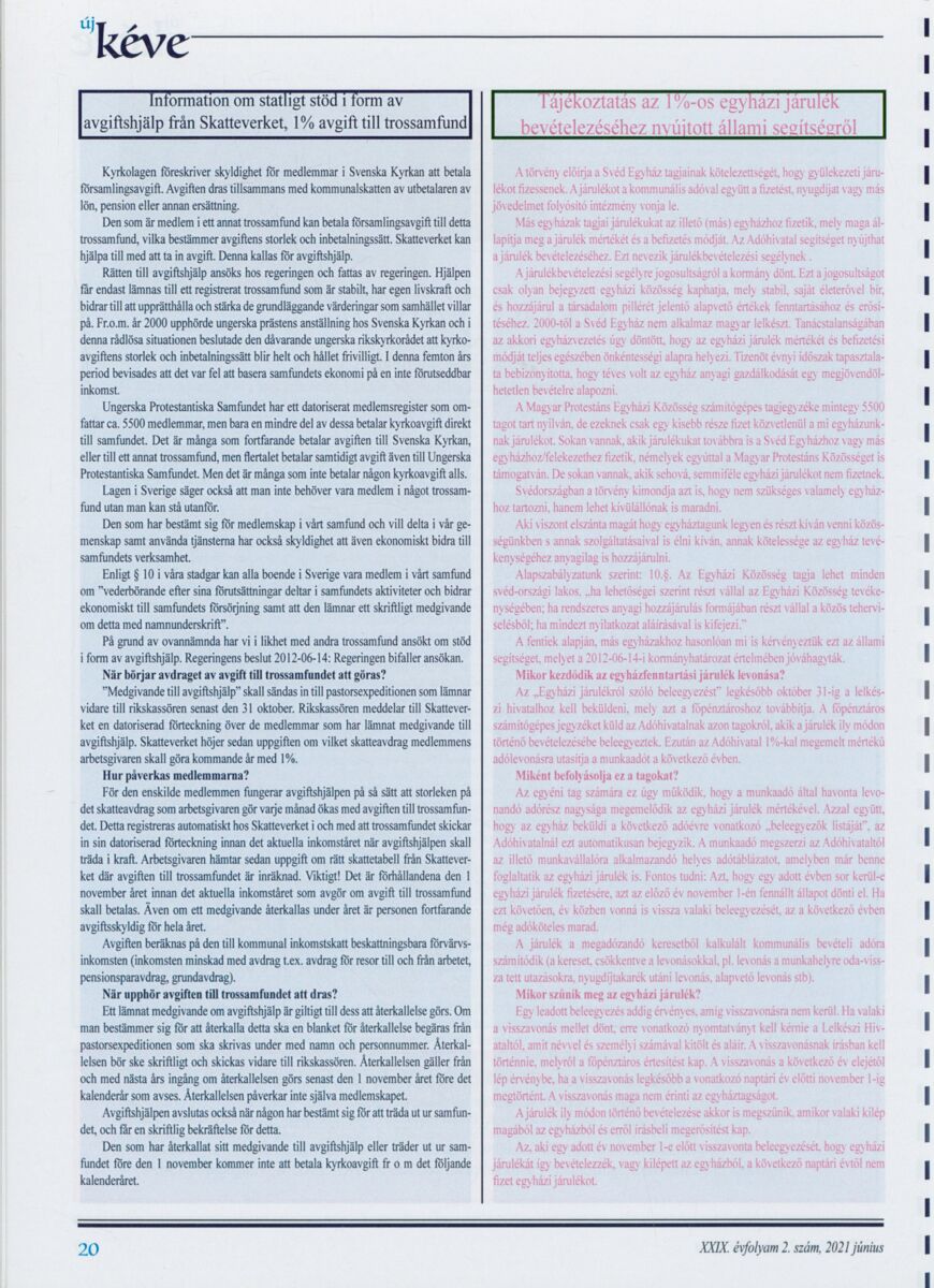 Új Kéve - A svédországi magyar protestáns gyülekezetek lapja. 2021.
