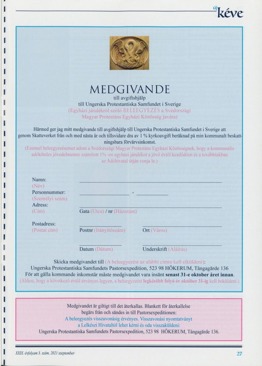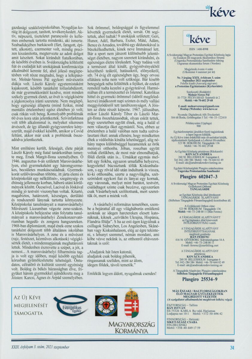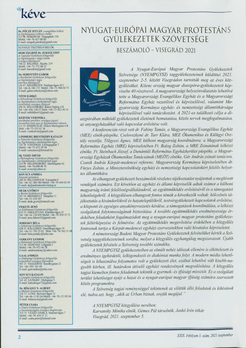 Új Kéve - A svédországi magyar protestáns gyülekezetek lapja. 2021.