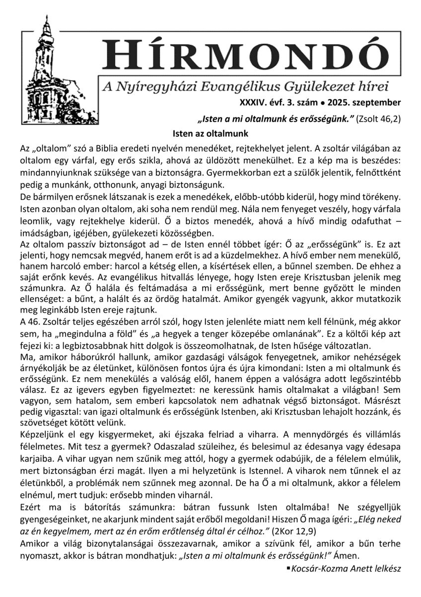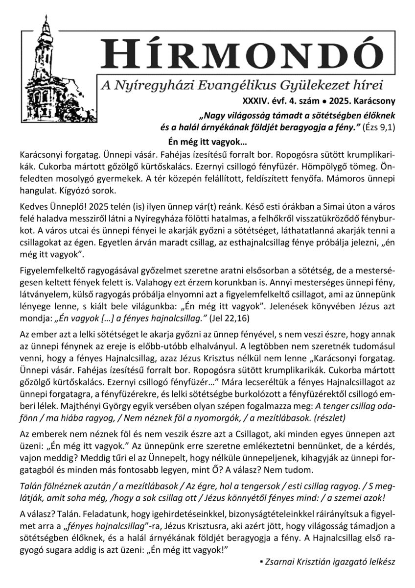 Nyíregyháza - Hírmondó. A Nyíregyházi Evangélikus Gyülekezet hírei. 30. (2021) -