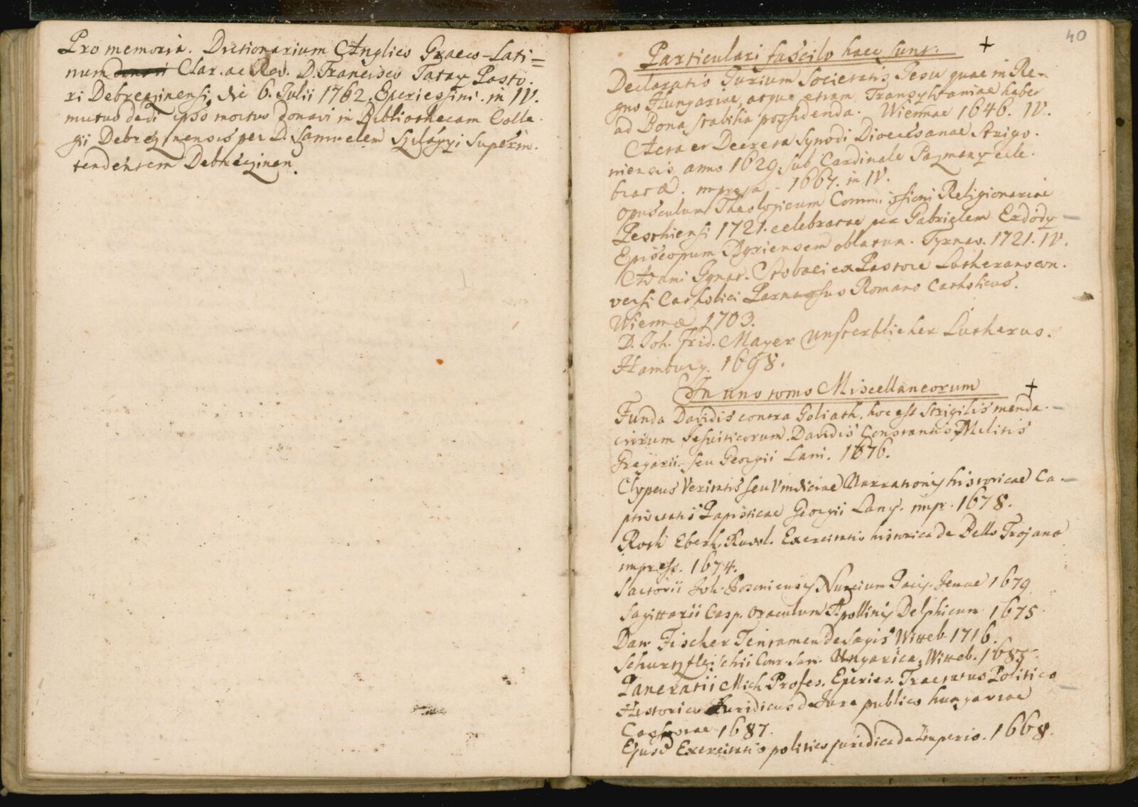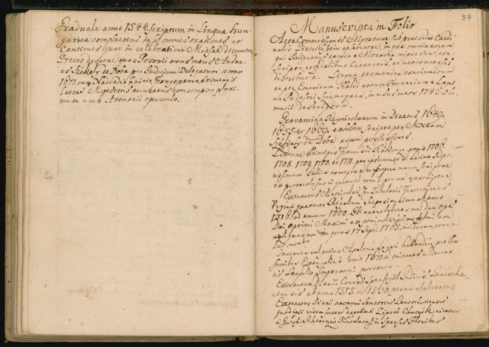 | Dobai Székely Sámuel: Catalogus librorum et manuscriptorum...[kézirat]. [1779 előtt] |