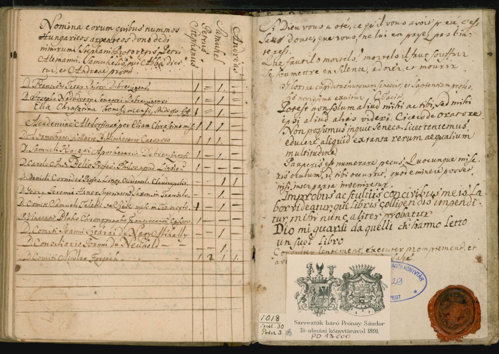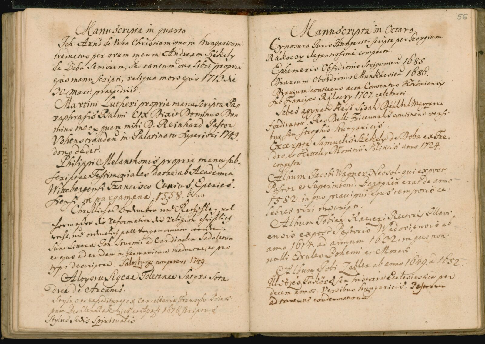 Dobai Székely Sámuel: Catalogus librorum et manuscriptorum...[kézirat]. [1779 előtt]